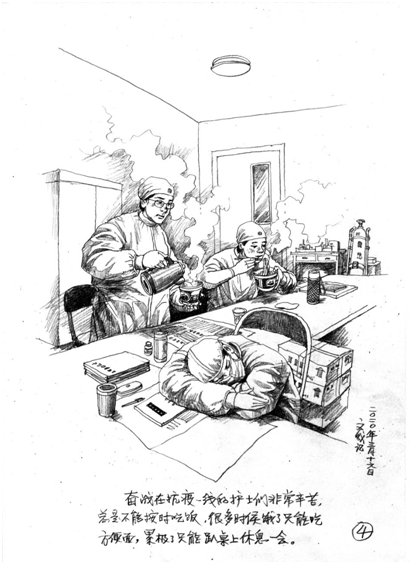 奋战在抗“疫”一线的护士们非常辛苦,总是不能按时吃饭,很多时候饿了只能吃方便面,累极了只能趴桌上休息一会。