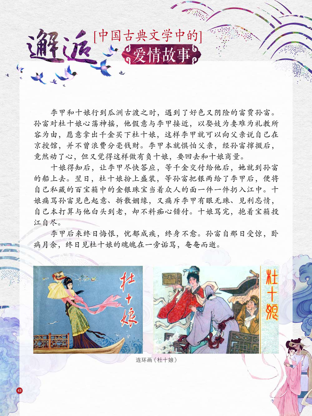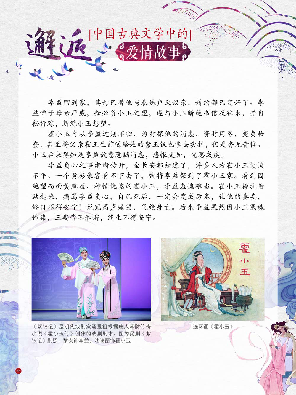 中国古典文学作品中的爱情故事并不都是完满的。由于中国古代是男尊女卑的封建社会,男性可以一妻多妾,女性却不具有相类的权力,以至于古代的爱情并不像当今人们观念上的爱情那么纯粹和惟一。另外,古代的婚姻讲求“父母之命,媒妁之言”,男女之间缺少恋爱的自由,即使有,也容易受封建礼教的限制,最终造成“始乱之,终弃之”的悲剧。