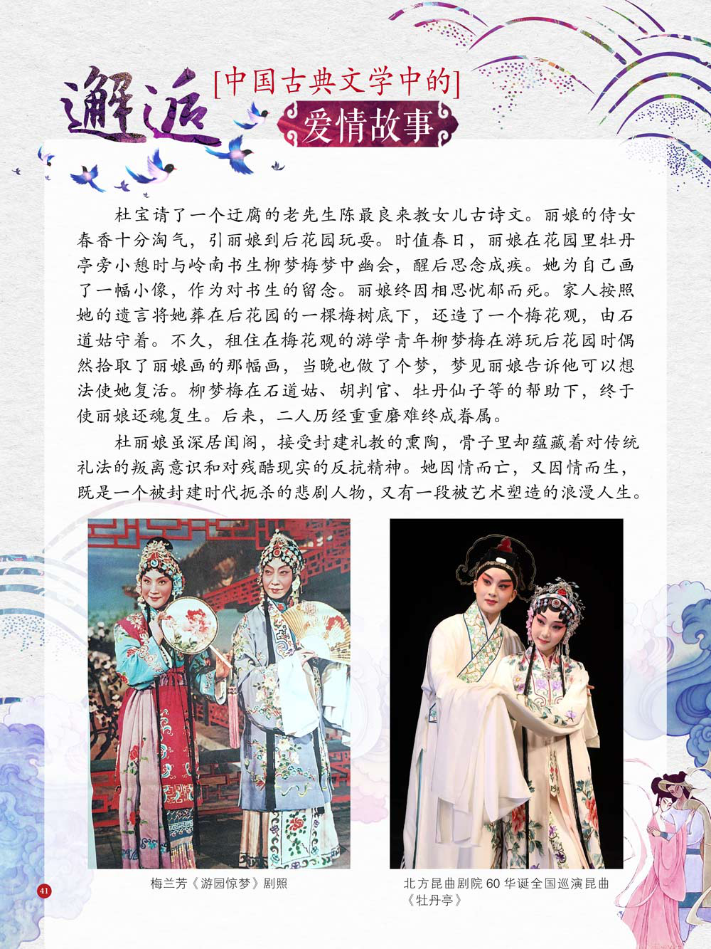 “邂逅相遇,适我愿兮”,从遥远的《诗经》时代开始,“邂逅”便成了中国古典文学作品中男女不期而遇的爱情故事的开始:司马相如到卓王孙家的一次作客,造就了“文君夜奔”的爱情佳话;杜丽娘梦中与柳梦梅相会,上演了一出“慕色还魂”的爱情奇迹;林黛玉初进贾府,贾宝玉一句“这个妹妹我曾见过的”,牵引出前世今生一段缠绵悱恻的爱恋……